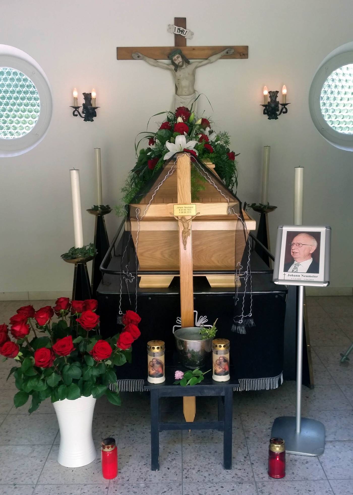 wir stehen hier vor dem Sarg von Johann Neumeier. Es fällt mir schwer hier zu sprechen, wenn man die Person gut gekannt hatte.