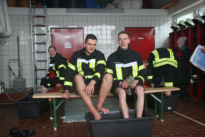 Nachdem sich alle bei einen Fußbad wieder aufgewärmt haben, gab es zum Abschluss noch Gegrilltes, Kaffee und Kuchen im Gerätehaus.