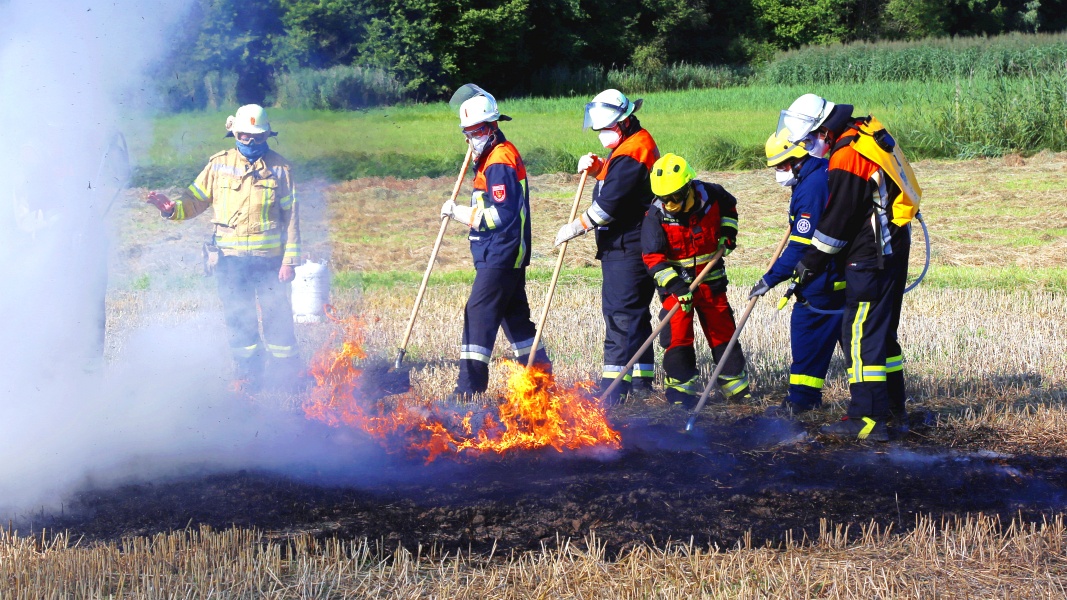 Nach einer theoretischen Einführung in die Themen Brandverhalten, Sicherheit, Taktik, Orientierung sowie Wasserentnahme und -versorgung folgte jeweils ein Praxistag. Dabei konnte das Gelernte unter realitätsnahen Bedingungen auf einem kontrolliert entzündeten Stoppelfeld praktisch umgesetzt werden.