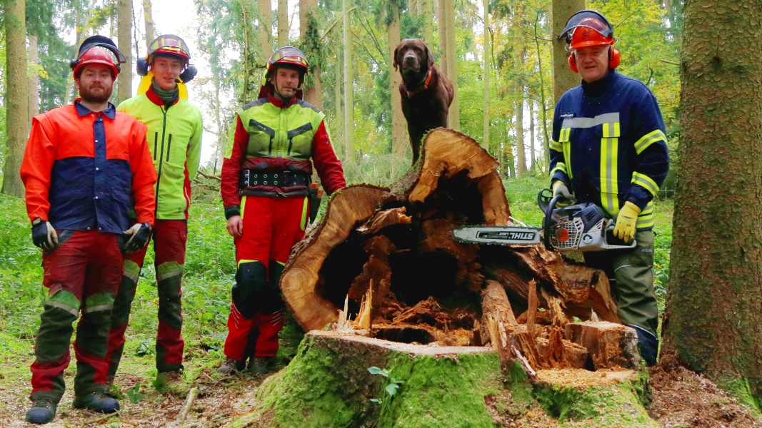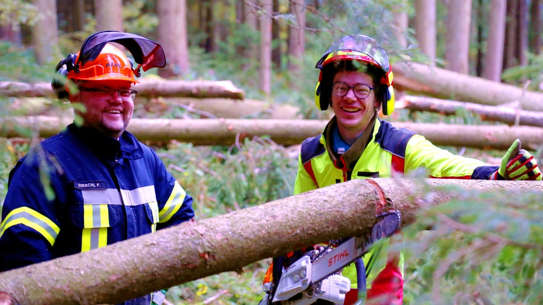 In diesem Jahr fuhren wir dazu in einen Holzeinschlag unseres Kameraden Josef Haun. Nach einer Unterweisung in die zu beachtenden Sicherheitsvorschriften und die effiziente sowie material- und kräfteschonende Arbeitsweise machten wir uns an die Arbeit. Je nach Ausbildung, die einige unserer Kameraden über den im Rahmen der von der Feuerwehr angebotenen Umfang hinaus, z.B. an der Bayrischen Waldbauernschule in Kehlheim, absolvierten, und Erfahrung, konnten die Kameraden unter Anleitung verschiedene Arbeiten durchführen. Bei der Aufarbeitung der gefällten Bäume hatten speziell diejenigen Kameraden, die beruflich oder privat wenig Möglichkeiten zum Einsatz der Kettensäge haben, die Möglichkeit unter Anleitung der erfahrenen Kameraden unterschiedliche Schnitttechniken anwenden. Weiterhin fällten wir, teilweise unter Verwendung von Windentechnik, mehrere Bäume.