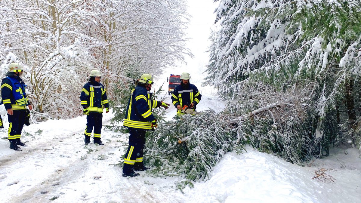 Am Freitag dem 1. Dezember und am Samstag dem 2. Dezember war Bayern von anhaltenden starken Schneefällen betroffen. Viele Bäume gaben unter der Last des schweren und nassen Schnees nach und stürzten auf Straßen und Gehwege. Wir waren, wie zahlreiche Feuerwehren im Landkreis Pfaffenhofen und in ganz Bayern, seit den frühen Morgenstunden bis in den späten Nachmittag des Samstags im Einsatz, um die versperrten Straßen wieder freizuschneiden. Weiterhin fällten wir geschädigte Bäume an Straßen, umso bestehende Gefahren abzuwenden.